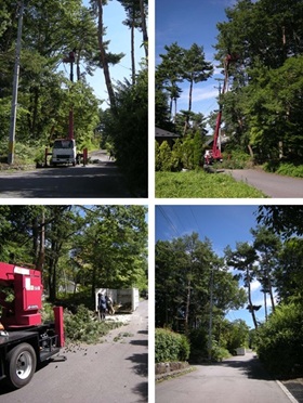 高所作業車で伐採